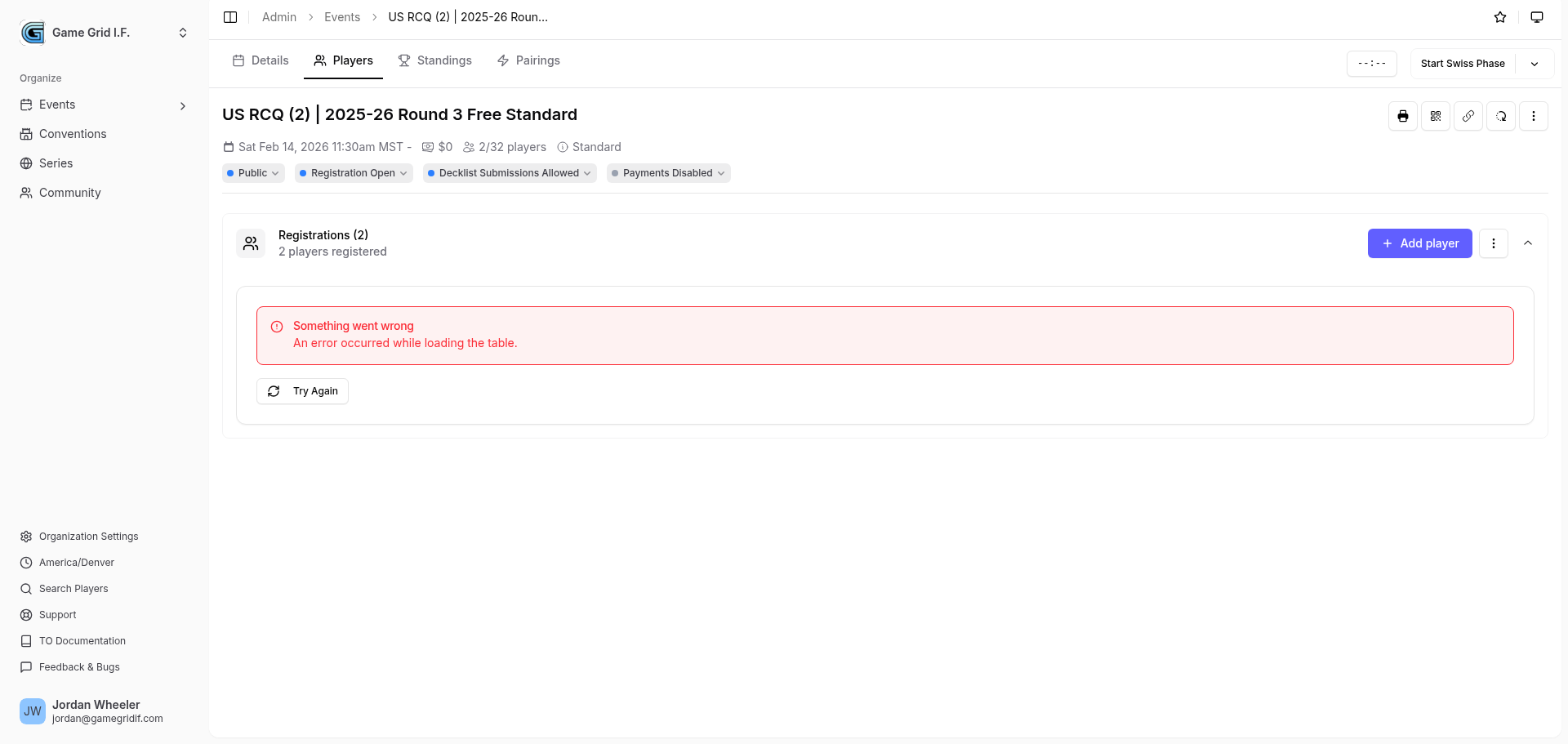 There is an error when I try to view player registration and decklists and there does not seem to be a way to fix it.